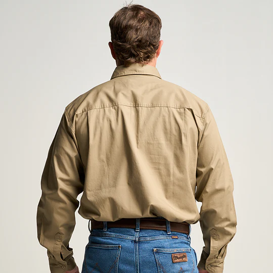 OBCMWS001-Khaki KILCOY | Mens Half Button Long Sleeve Work Shirt - Khaki
